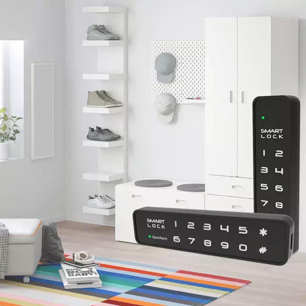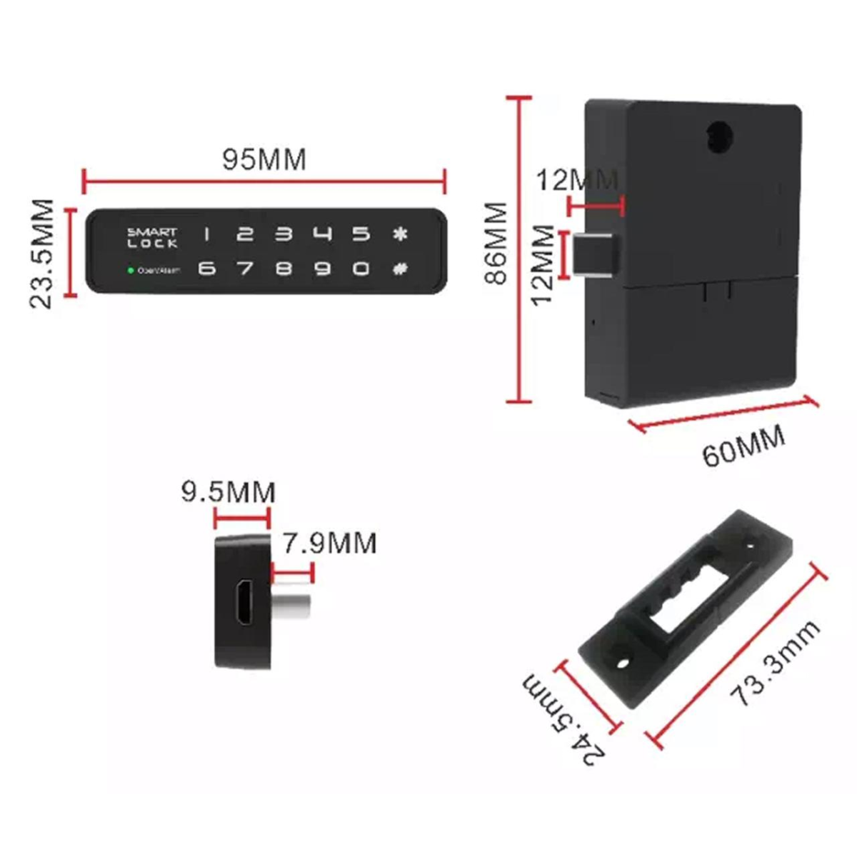 Замок меблевий електронний F023 з чорним алюмінієвим лицевим корпусом з доступом по сенсорній клавіатурі