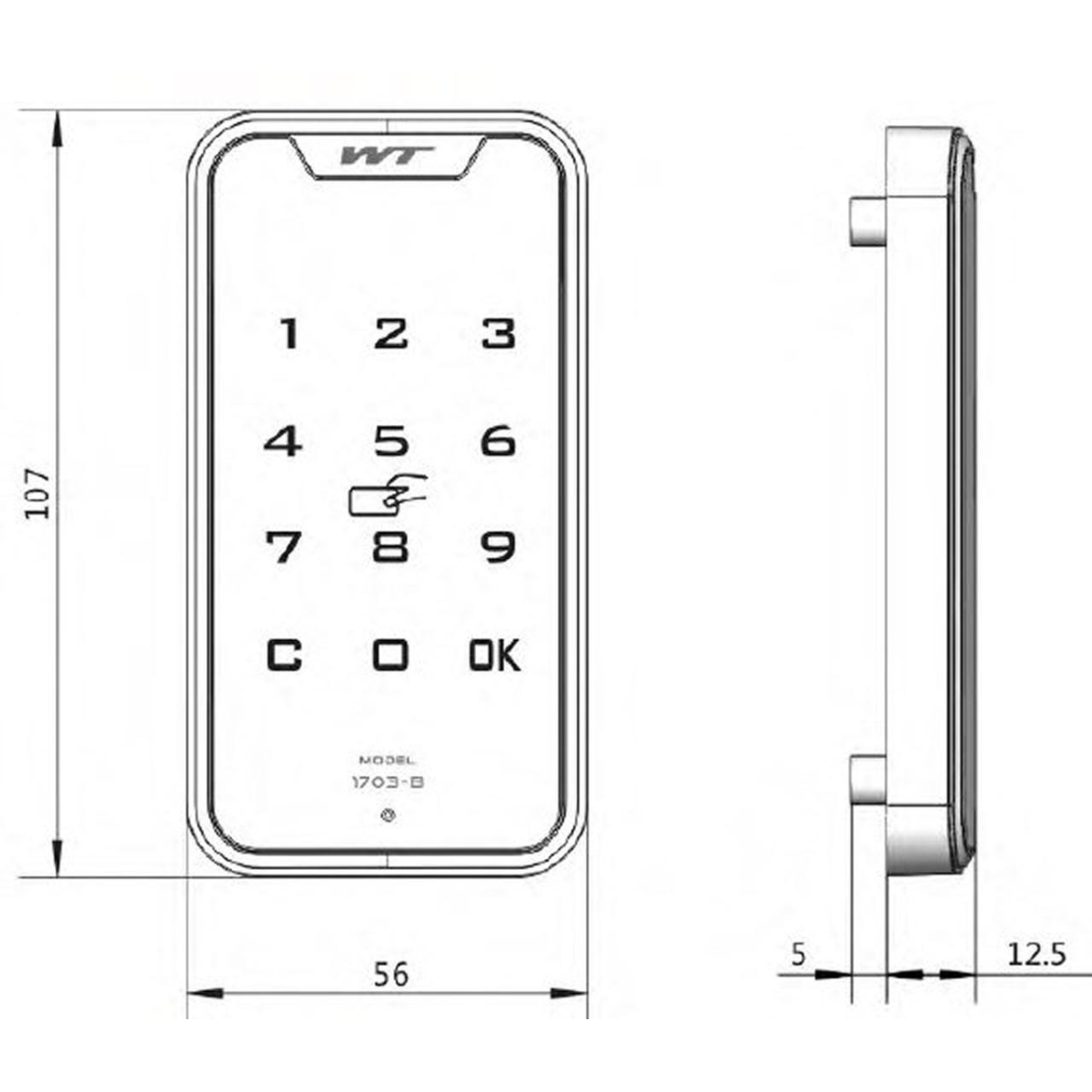 Замок електронний меблевий з комбінованим доступом: картка або код M-1703-B-IC із моторною защіпкою в окремому блоці