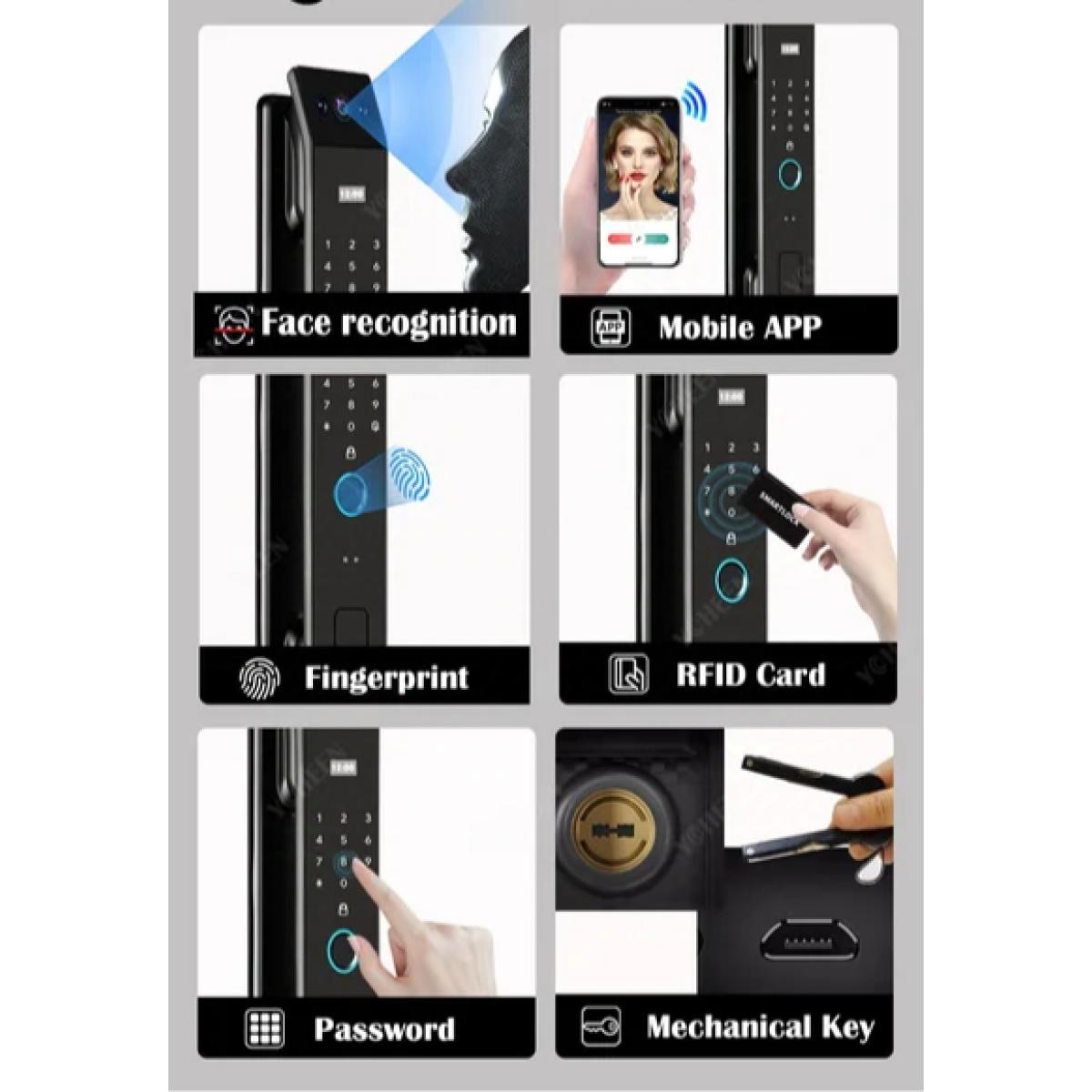 Замок розумний електронний із багатоваріантним доступом у комплекті з багаторигельним 6068 замковим механізмом