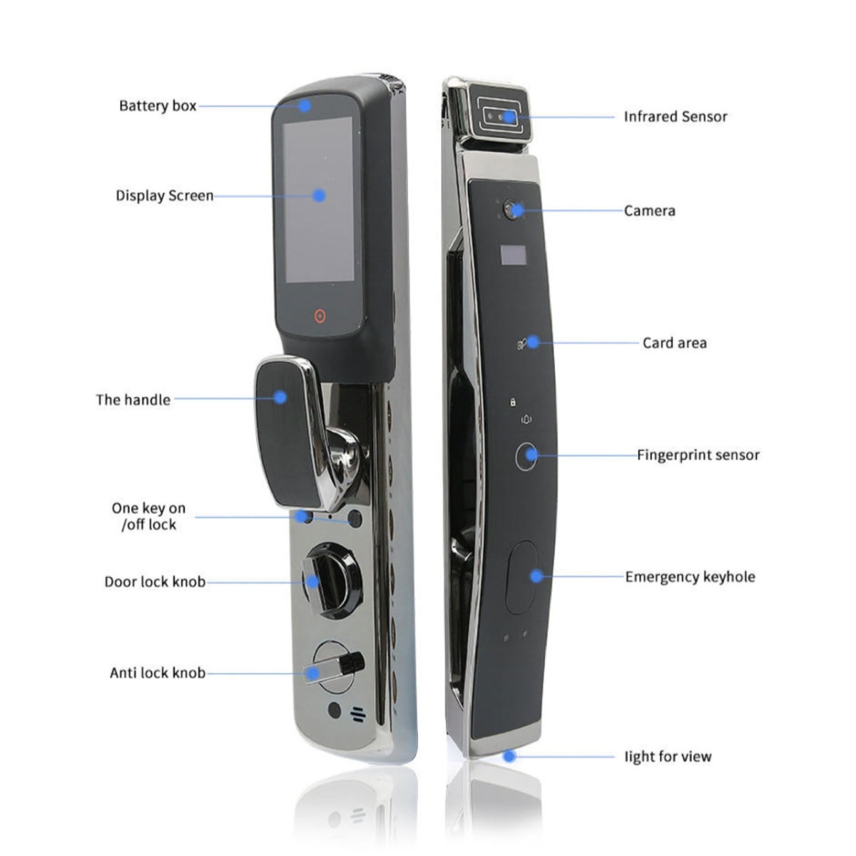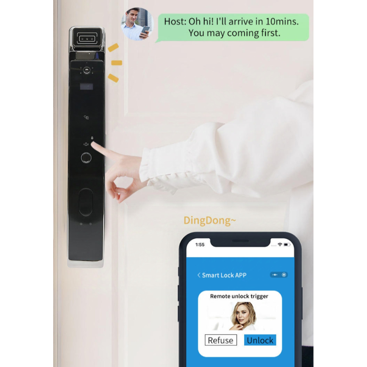 Розумний замок для вхідних квартирних дверей з багатоваріантним доступом X1 призначений для встановлення на двері спільно із замковим механізмом типу ХХ68. Замок забезпечує доступ із застосуванням Розпізнавання за формою обличчя, Розпіднавання за відбитком пальця, за допомогою безконтактної картки, за клавіатурним кодом, за допомогою смартфона із додатком Xhome, та за допомогою механічного ключа екстреного доступу.