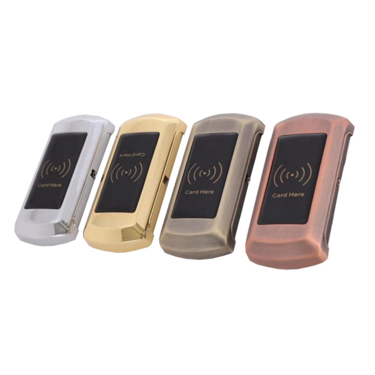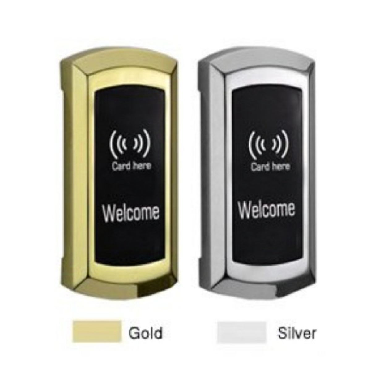 Замок електронний меблевий накладний з моторним висувним ригелем SA005 являє собою накладну конструкцію, яка складається із фронтальної ручки-зчитувача, внутрішнього моторного ригельного блока з батарейками електроживлення та фіксуючої ригель “отвєтки“ для утримування висувного ригеля і відповідно дверцят шафи у закритому стані. Замок призначений для встановленя на шафки із ДСП дверцятами завтовшки до 20мм. Фронтальний зчитувач виконує функцію дверної ручки. Замок відчиняється/зачиняється за допомогою безконтактних карток/браслетів у форматах E-Marine (125кГц) або Mifare1 (13?56МГц).