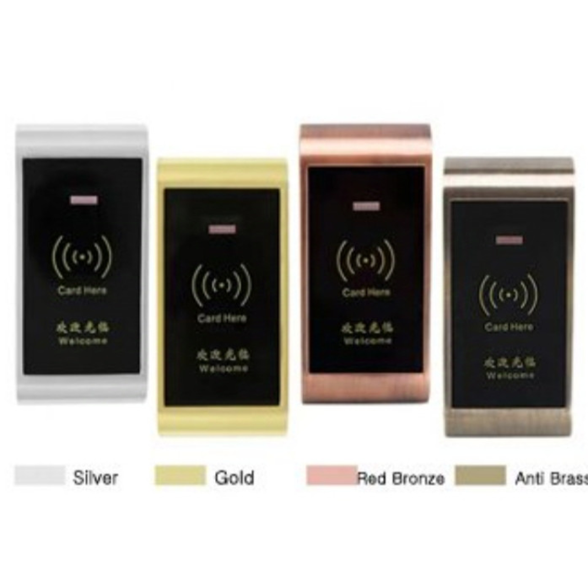 Замок електронний меблевий накладний з моторним висувним ригелем SA011 являє собою накладну конструкцію, яка складається із фронтальної ручки-зчитувача, внутрішнього моторного ригельного блока з батарейками електроживлення та фіксуючої ригель “отвєтки“ для утримування висувного ригеля і відповідно дверцят шафи у закритому стані. Замок призначений для встановленя на шафки із ДСП дверцятами завтовшки до 20мм. Фронтальний зчитувач виконує функцію дверної ручки. Замок відчиняється/зачиняється за допомогою безконтактних карток/браслетів у форматах E-Marine (125кГц) або Mifare1 (13,56МГц).