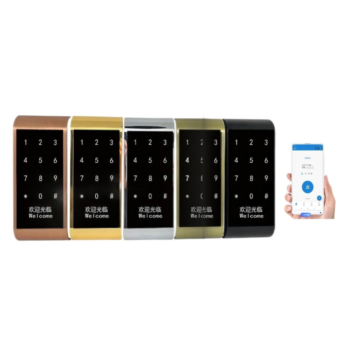 Замок електронний меблевий накладний із доступом за карткою/кодом/смартфоном з моторним ригелем-защіпкою